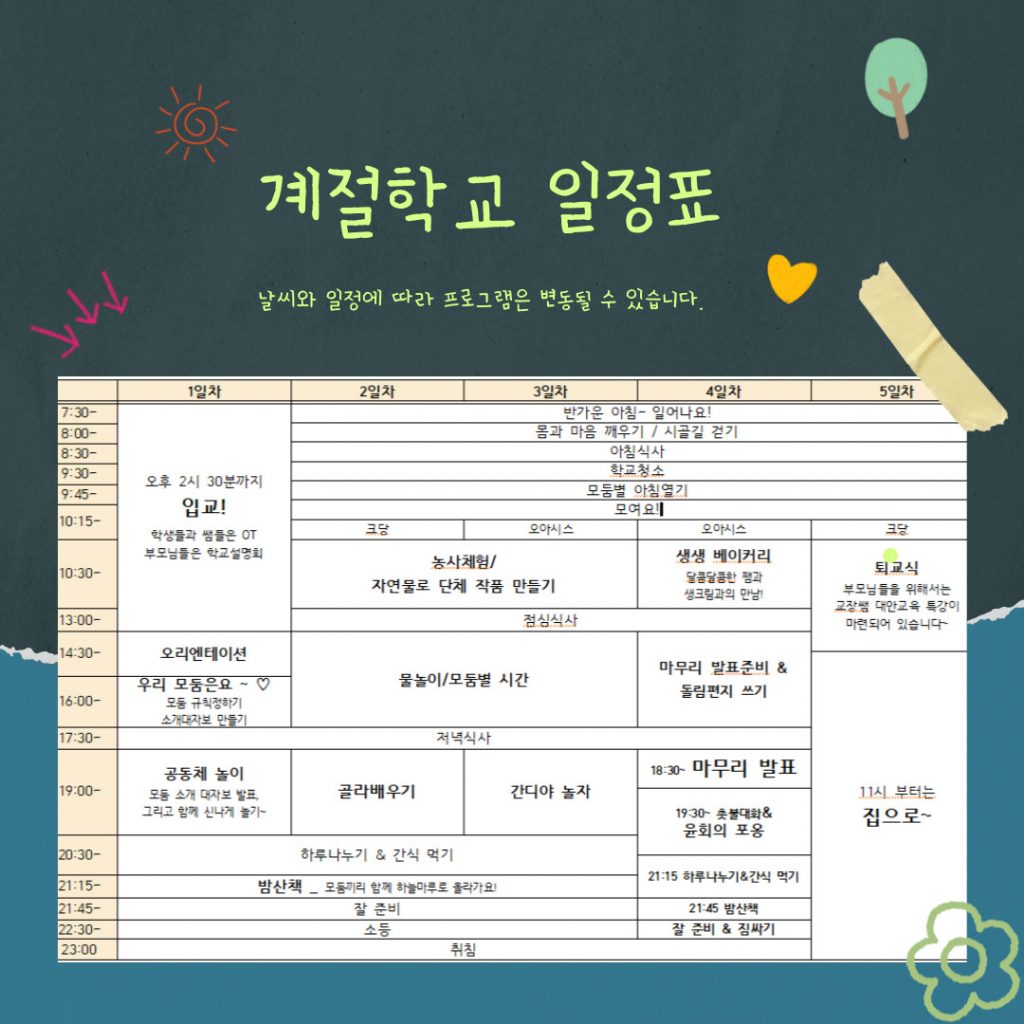 - 2024 제천 간디학교 여름계절학교 일정표 2024.07.28